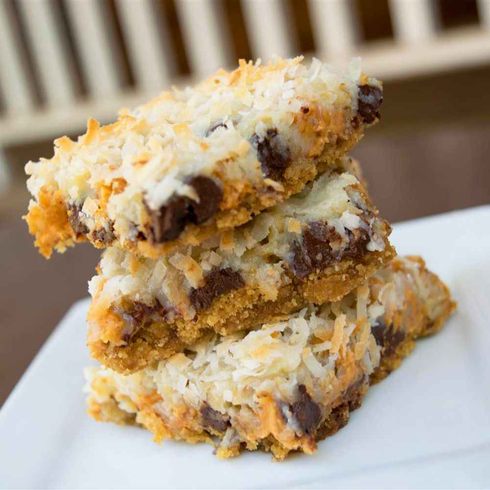 These 7 layer bars are easy to make, and very rich. You can use different kinds of chips (vanilla or peanut butter) to suit your taste.